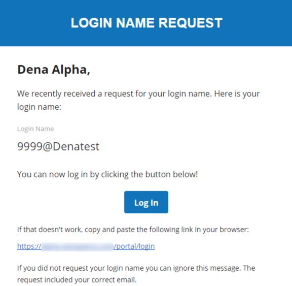 If the email (and extension) match the user in the system, a Login Name Request email will be