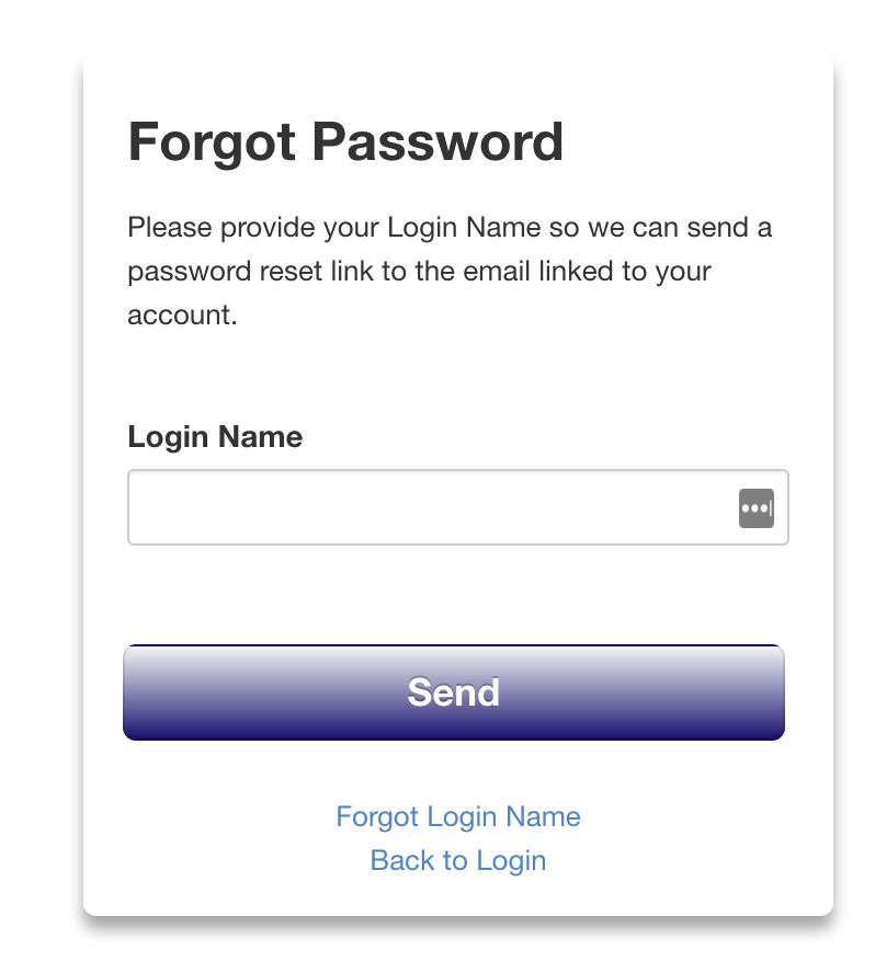 Clicking the Forgot Password link on the login page will prompt the user for their Login Name.